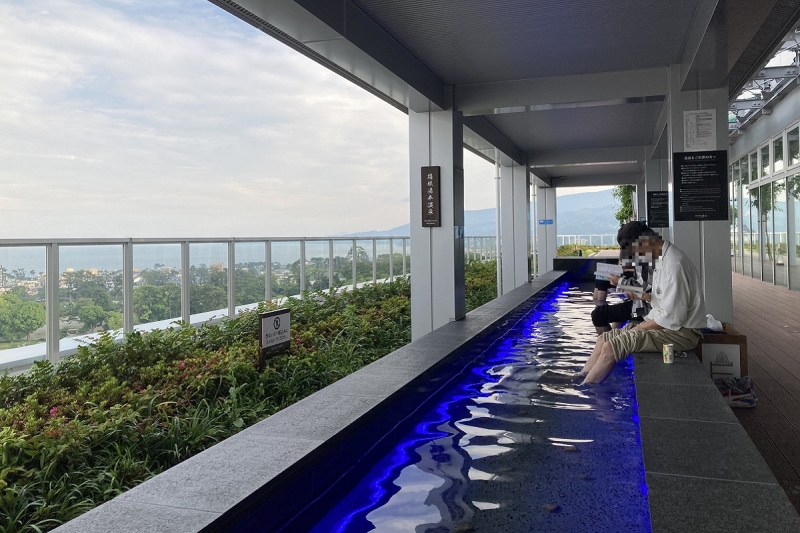 14階には足湯が楽しめる展望庭園があり、19時まで営業。箱根湯本の温泉を使っており、足湯に浸かりながら、小田原の街並みや相模湾を臨む事ができます。なんとその眺望は、小田原城の天守閣展望デッキとほぼ同じだそうです。
