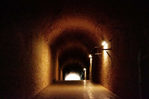 猿島要塞は山をくり抜いて道を作り、両壁に兵舎や弾薬庫が埋め込まれるように作られています。そのため外側からは森があるようにしか見えません。明治時代のレンガ造り建造物はとても貴重で、これらは国史跡に指定されています。切り通しの先にある通称「愛のトンネル」は、レンガ造りのトンネルとしては日本最古のものだそうです。