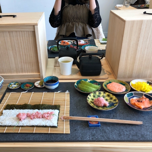 「かなざわはこまち」の2階にある、自分で手巻き寿司をつくりながら食べるお店。九谷焼の小皿に乗ってネタが運ばれてくるのがとってもフォトジェニックです。ネタは、5種類、6種類、8種類と選ぶことができます。ネタには、サーモンやかにみそ、いくら、まぐろなどの魚系から、アボカドやブロッコリースプラウトなどの野菜、そしてローストビーフなど、40種類以上用意されています。