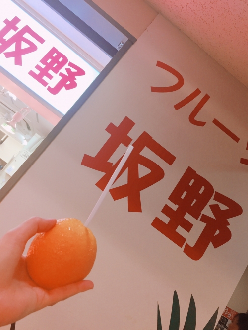 近江町市場にある果物専門店「フルーツ坂野」。観光客に人気は中身を丸ごとくり抜いた「100%オレンジジュース」です。オレンジからストローが直接飛び出ているビジュアルがインパクト大で、味は酸味が少なくスッキリとして飲みやすいですよ。この他にも、棒に刺した完熟のパイナップルやカットメロンも販売されています。