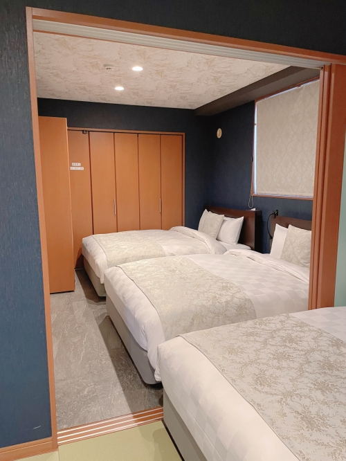 室内には一部畳があり小さいお子さん連れにもピッタリです。ベビーベッドの貸し出しも2歳以下(要予約)でできますが、畳なので、下で寝かせることもできますよ。また、客室タイプには「キッズエリア付きトリプルルーム」などもあります。