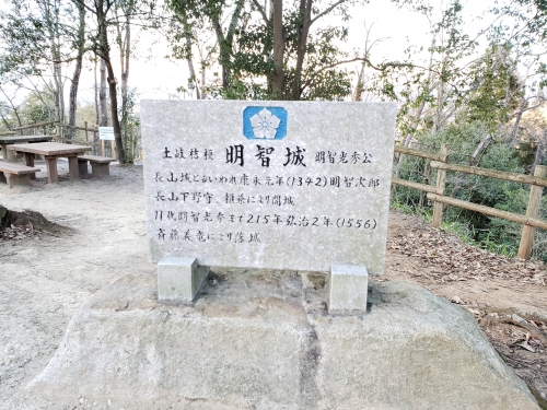 1342年に美濃の守護であった土岐頼清の次男である土岐頼兼によって築城され、1556年に光秀の叔父であった明智光安が城主であった時に、稲葉山城(現在の岐阜城)城主であった斎藤義龍(斎藤道三の息子)の攻撃によって落城したと伝わっています。その後、光秀が信長の家臣となり、明智城一帯は再度明智家の所領として与えられました。