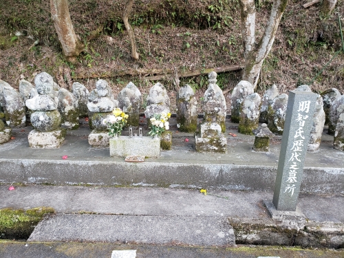先に紹介した明智長山城の麓にあるお寺で、明智家の菩提寺です。境内には日本一大きな光秀の位牌や、明智家歴代の墓所があり、毎年6月には「光秀供養祭」が執り行われます。