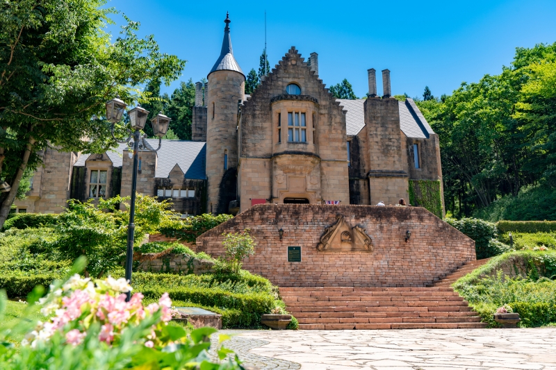一番の見どころはやはり、ロックハート城の復元。1829年にウィリアム・ロックハート伯爵がイギリスに建てたもので、1987年に俳優の津川雅彦さんが購入しました。城は解体され日本に運ばれ、1988年12月に日本に到着。その後紆余曲折を経て、1993年4月6日、群馬県高山村に復元されました。