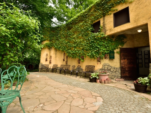 10万㎡の敷地内に、石造りの教会やショップ、レストランがあり、中世の街並が再現されています。