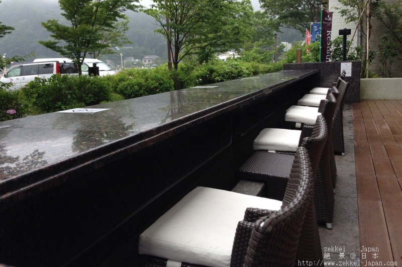 さらに屋外テラスのパーラーには源泉掛け流しの足湯があり、足湯に浸かりながらゆったりした気分で芦ノ湖を眺めることができます。