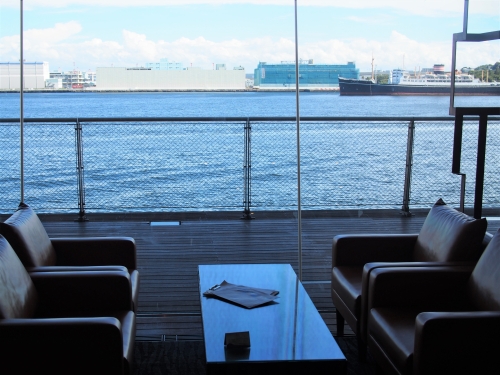 「大さん橋(国際客船ターミナル)」の2階にあるバーガーカフェ。船の発着ターミナル内にあるため、店内の全面窓から横浜の海を一望できるのが魅力です。明るい光が差し込む店内には、カウンター席やソファ席、ボックス席があります。