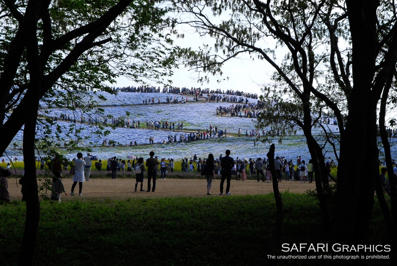 ヒキで撮ってもヨリで撮っても可憐で清々しい雰囲気のネモフィラですが、朝一番に行かないとあっという間に人でいっぱいになり、ネモフィラを撮っているのか行列を撮っているのかわからないほどになってしまうのです。