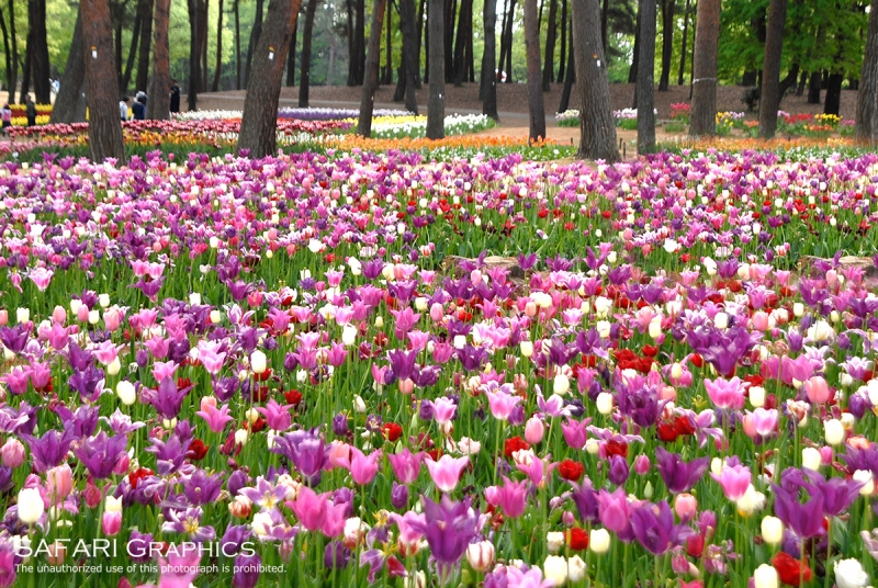西駐車場からネモフィラの咲く「みはらしの丘」を目指す際、チューリップが咲き乱れる「たまごの森フラワーガーデン」を通るのですが、あくまで観賞はネモフィラの後が鉄則です!