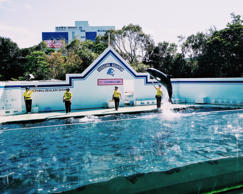 品川駅高輪口から徒歩2分の都市型水族館。幻想的な展示が多く、大人にもおすすめの水族館です。見どころのひとつが、クラゲの展示空間「ジェリーフィッシュランブル」。そして大迫力の「ドルフィンパフォーマンス」は、イルカのショーをウォーターカーテンと光と音によって見事に演出しています。
