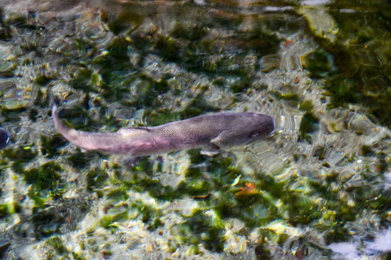 竜頭ノ滝下から徒歩3分ほどの距離にある、水産研究・教育機構の広報施設「さかなと森の観察園」。研究所の敷地の一部が一般公開されていて、ホンマスやヤマメ、アマゴにレインボートラウト(ニジマス)など、中禅寺湖に生育している様々な種類の魚を見ることができます。