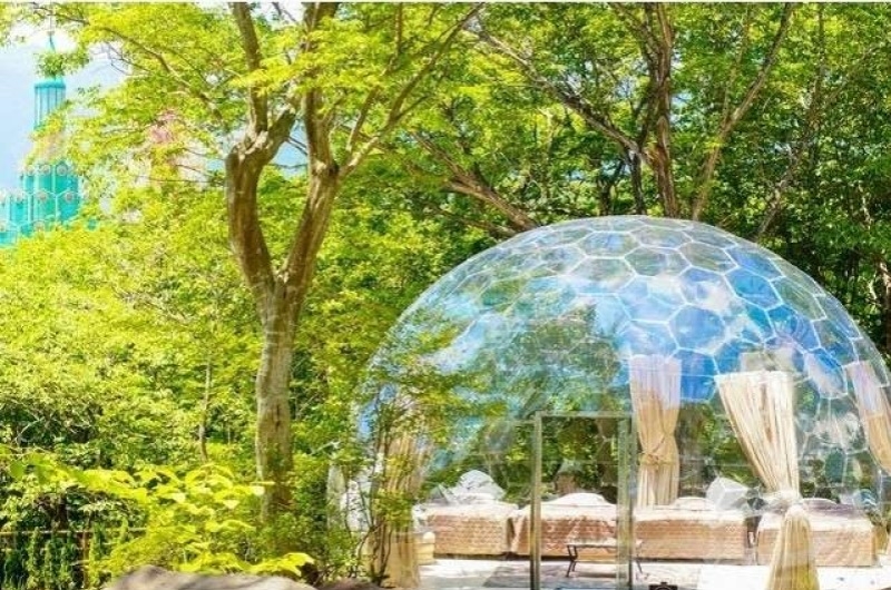 大型レジャー施設「那須ハイランドパーク」に隣接するTOWAピュアコテージ。ここでの注目は、日本初となる透明なドームです。ガラス玉のような半球体の中では360度遮るものがなく、那須の自然や満天の星空を間近に感じられます。