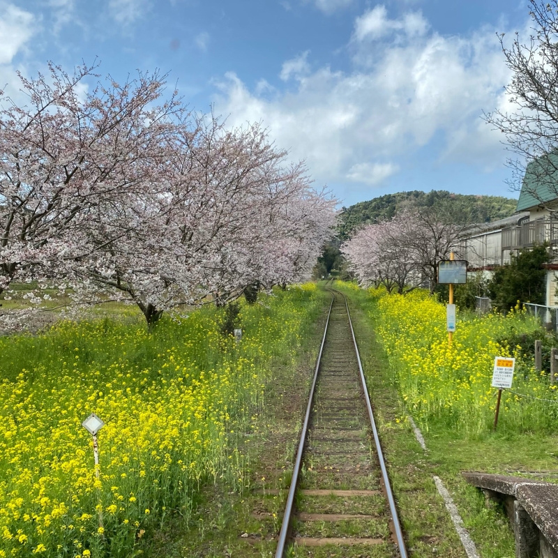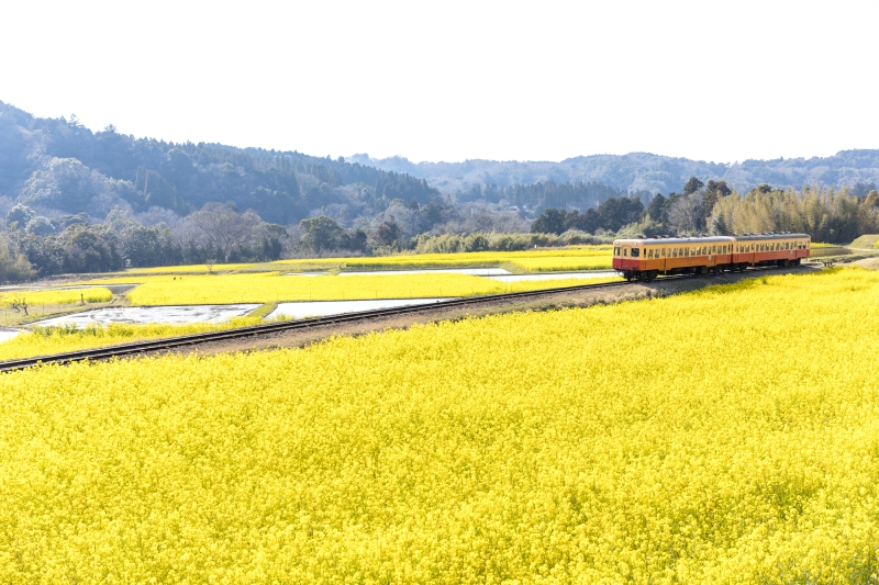とくに3月下旬〜4月上旬には、車窓から菜の花と桜が楽しめるというのが大きな魅力!とくに、養老渓谷駅と上総大久保駅間にある石神の花畑では、あたり一面に広がる菜の花の絶景が楽しめますよ。