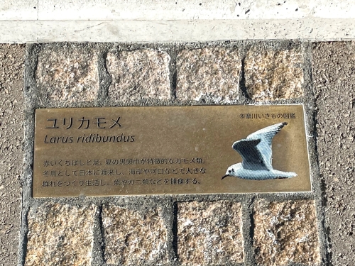 足元には、東京都大田区と神奈川県川崎市の県境の標識や、東京タワーが見える方向なども表記してあります。また、「多摩川いきもの図鑑」なども埋め込まれていますので、ぜひチェックしてみて下さい。