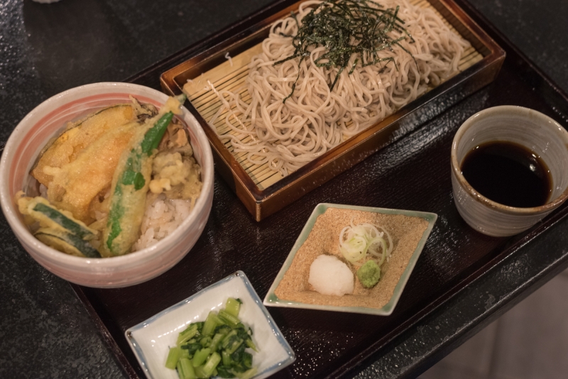 星野エリアにある村民食堂は一般の方も利用できるカジュアルダイニングです。お値段はお手頃で、こちらのざるそば・季節野菜の天丼(小)セットは1,600円でした。