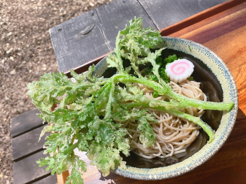 インパクトもあり!!「天ぷら春菊 蕎麦」