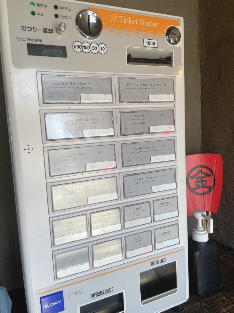 注文方法は、食券を買って番号を呼ばれたら取りに行くスタイル。メニューには、シンプルなかけ蕎麦から、人気の天ぷらが乗った品、信州らしいくるみを使った蕎麦まであります。