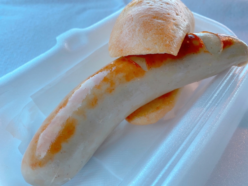 人気メニューの「ホットドック(450円)」は、プレーンやカリー、バリアンタハーブと呼ばれるパプリカやバジルが入った品が販売されています。ソーセージはパリっとジューシーで、パンも美味しく何個でも食べられそうです。また、ソーセージの販売もしているのでお家用に買っていくのもいいかもしれません。