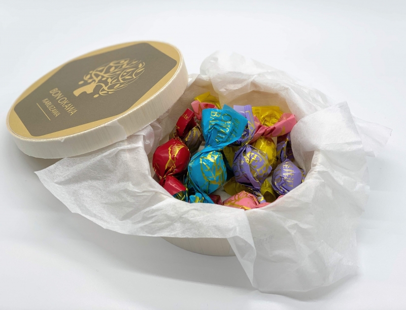 キャンディのような包みに入った、見た目にもおしゃれなマカダミアナッツ入りのチョコレート。チョコのフレーバーはりんごやブルーベリー、レモンにキャラメルなど計6種類で、包み紙にフレーバーの種類が書かれています。コロンと丸い形もかわいらしく、お土産として渡したら喜ばれること間違いなしのスイーツです。