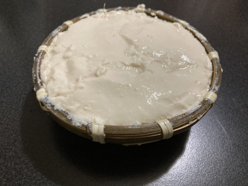 こちらは中サイズ。大きなざるに真っ白なお豆腐が溢れんばかりに入っています。絹ごしなのにしっかりしているお豆腐はお箸で持っても大丈夫!