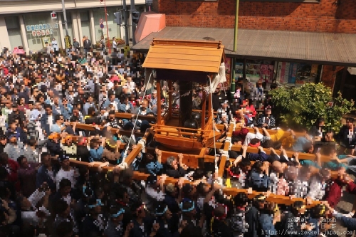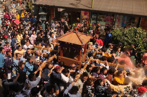 皆で掛け声を掛ける一体感と神輿を担ぐ人の熱気で見ているだけでも夢中になってしまいますが、神輿が練り歩く道は写真のように人で溢れますので、周りや足元の段差などに十分注意して下さい。