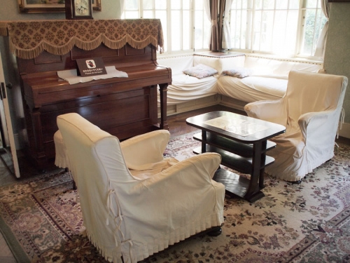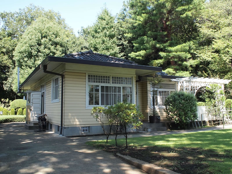 1925年(大正14)、現在の大田区田園調布四丁目に建てられた大川の邸宅です。当時としては珍しい全室洋間の可愛らしいこじんまりとした一軒家で、居間を中心としたその周りに食堂、寝室、書斎が配置されています。