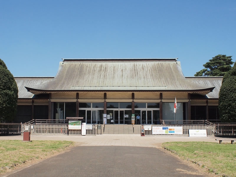 江戸東京たてもの園の出入り口になります。1940年(昭和15)に皇居前広場で行われた紀元2600年記念式典のために仮設された式殿です。式典終了後の1941年(昭和16)8月に、現在の場所に移築されました。