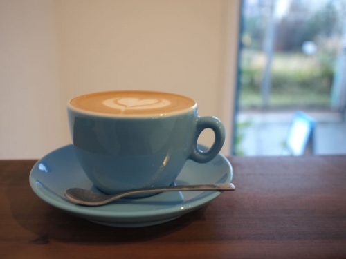 自家焙煎のコーヒーショップで、「TASTING SET」といって産地の違う3種類のコーヒーを飲み比べできるメニューがあり、コーヒー好きなら試してみたい。そしてコーヒーやカフェラテを注文すると、とても綺麗なブルーのカップに注がれるのも気分があがります。
