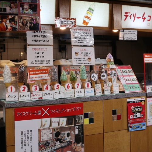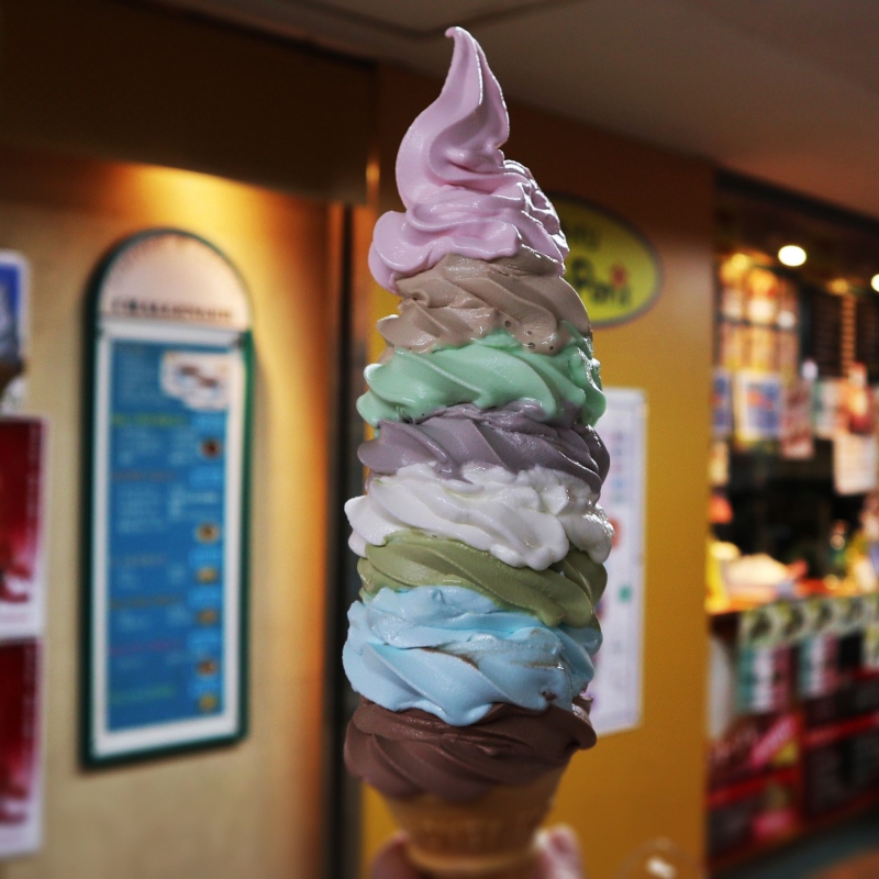 中野ブロードウェイの地下にある有名なアイスクリーム店。じつは中野ブロードウェイが開業した1966年からから続く老舗で、あまりに大きなソフトクリームが食べられるお店として大人気となっています。