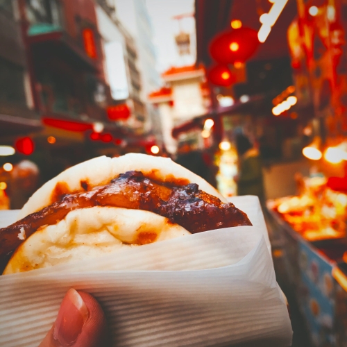 ランチやディナーに本格中華を味わうのもいいですが、やはり南京町では点心を買って食べ歩きするのも楽しみの一つ。1日約1万3,000個の豚まんが売れる、元祖豚まんのお店「老祥記」をはじめ、旨みたっぷりの角煮バーガー、アツアツの小籠包など、店頭で購入できる食べ歩きグルメが充実しています。