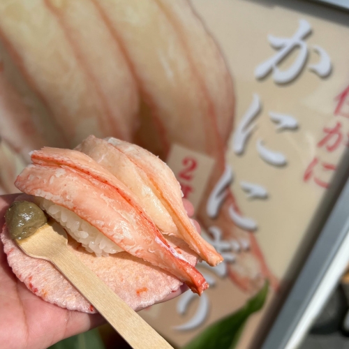 城崎🍴食べ歩きもいっぱいしました。城崎温泉駅前のカニ味噌を付けて頂く《カニ握り》はほんとに美味しくお皿代わりのカニせんべいも美味しいっ🦀ずっと作ってみたかった温泉卵は上手く作れてちいかわちゃんの顔を書いてみました。