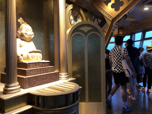 展望台のある5階は、豊臣秀吉が大坂城に作った「黄金の茶室」をイメージした金ピカのフロア。地上87.5mから大阪の街並みを360度楽しめます。そして幸福の神様ビリケンが鎮座し、足の裏をなでると願いが叶うと言われています。平成27年(2015年)には、地上94.5mの屋外展望台「天望パラダイス」もオープンしました。