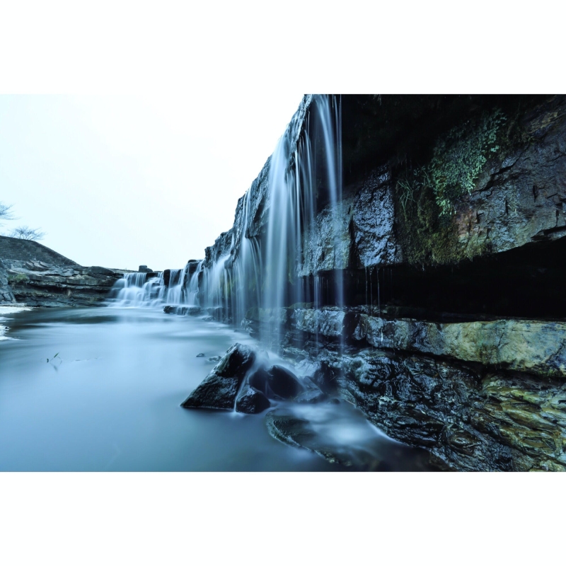 ”三木のナイアガラ”と呼ばれる、緑豊かな丘陵を流れる美嚢川の滝。幅30mとかなり横長に広がる珍しい滝です。落差は4mあり、雄滝と雌滝の2段になって流れています。厳しい冷え込みがつづくと滝の水が凍り、無数のつららが吊り下がる幻想的な光景を見ることができます。