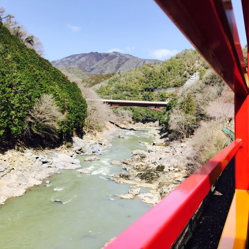 また人気の観光列車「嵯峨野トロッコ列車」では、眼下に保津峡を眺めながら、約7.3kmの道のりを約25分かけてのんびりと走り抜けます。