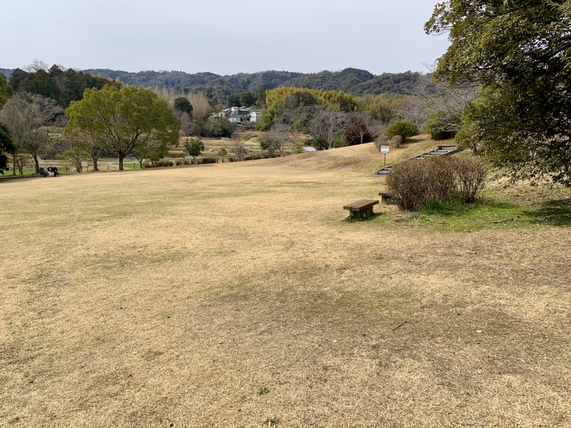 園内各所にはベンチがあるので、お弁当は食べやすいです。園内の北西にある児童広場には、広い芝生もあり、矢田丘陵ののどかな風景が眺められるのでおすすめです。テーブルのある場所が少ないので、レジャーシートがあると便利でしょう。