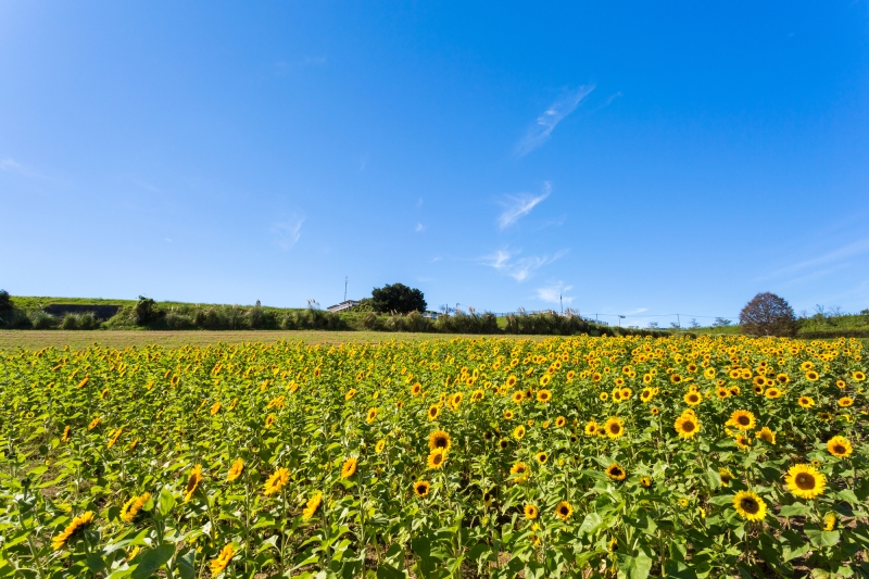 夏のデートにぴったりな、ひまわり畑。佐用町内の6地区で時期と場所をずらして、西日本最大級の約120万本のひまわりが咲き誇ります。開花時期は7月上旬~8月上旬にかけて。