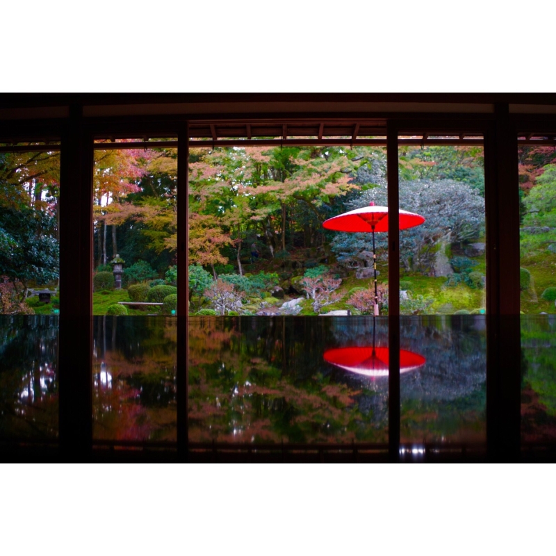 春には青もみじ、秋には紅葉が黒いテーブルにリフレクションする絶景が見られることでも人気。庭園を眺めながらお菓子付きのお抹茶もいただけるので、雨の日は時間のゆるす限り、インスタ映えする絶景を眺めながらのんびりと過ごしてみてはいかがでしょうか。