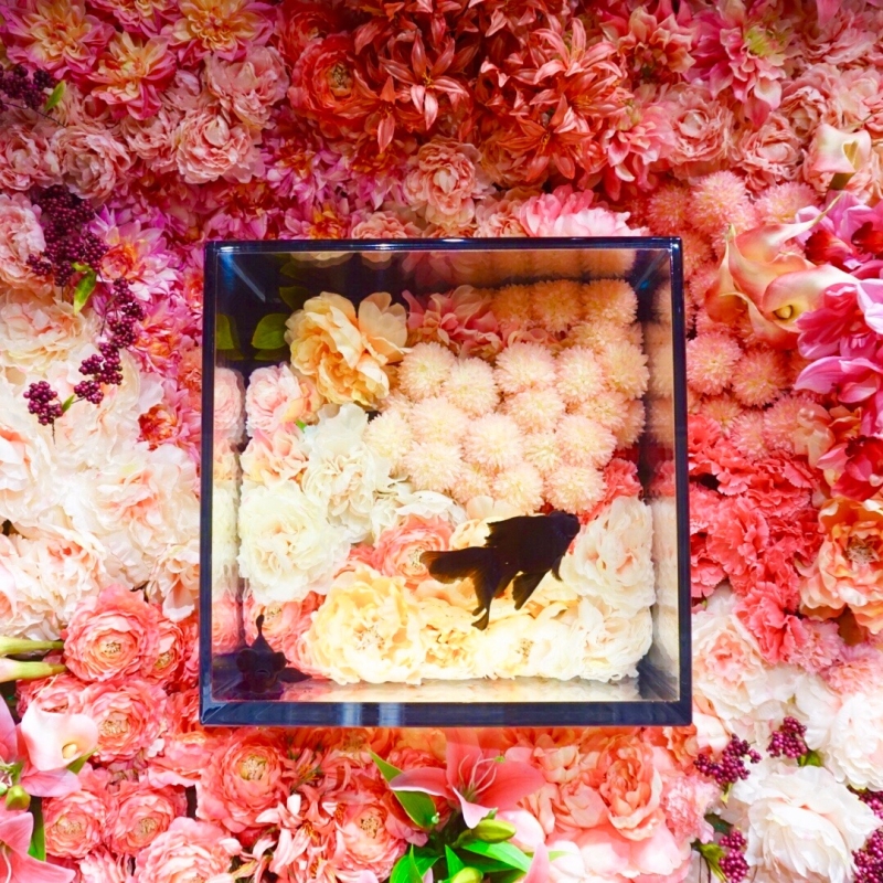 日本三大金魚の産地のひとつである奈良県にある、常設の金魚ミュージアム。プロジェクションマッピングや、ミラーボール、フラワーなどを使って、金魚をより美しく、そして神秘的に見せる工夫がなされています。