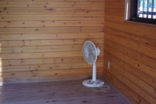 バンガローのなかには照明とコンセント、扇風機が置かれてあるだけのシンプルなもので、エアコンなどの設備はありません。また、寝具なども持参する必要がありますが、車はバンガローのそばに駐車できるため持ち運びは比較的楽に行えます。