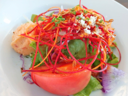 また、ランチセットをオーダーすると日替わりのミニサラダが提供されますが、セットサラダとは思えないクオリティなので、こちらも要チェックです。彩り鮮やかな有機野菜がふんだんに用いられ、アートのような美しさ!