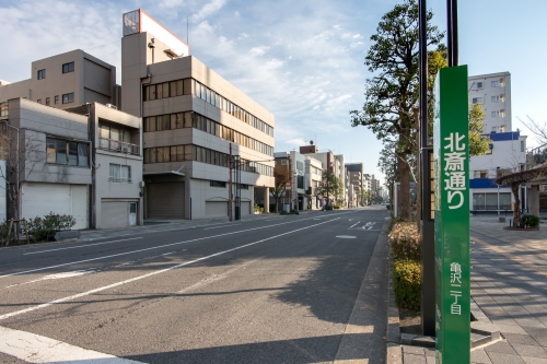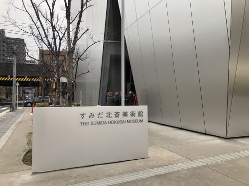 都営大江戸線の両国駅から、徒歩で約7分。北斎通りを直進すると、特徴的な外観のすみだ北斎美術館があります。