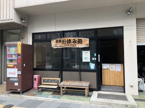 北斎通りにある無人の休憩所で、都営大江戸線両国駅とすみだ北斎美術館の中間あたりにあります。室内には自由に使用できるテーブルや椅子がありますので、飲み物や食べ物を持ち込んで休憩するのに最適の場所です。冷暖房もありますので、疲れた時や悪天候になった時の避難場所として覚えておくと便利です。