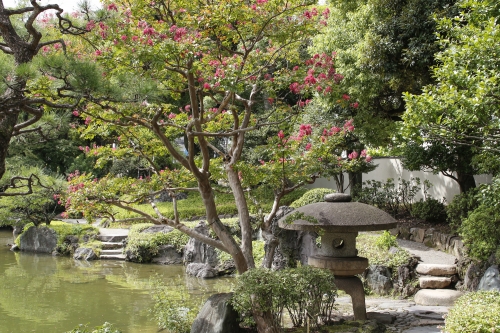 元禄年間(1688年から1703年)に築造されたといわれている大名庭園は、隅田川の水を引いた広い池の周りを散策路が囲む素敵な日本庭園になっています。植物も多く植えられ四季折々に姿を変える庭園は、両国エリアの観光スポットとして、また散策の休憩スポットとしてもおすすめの場所です。日没後のライトアップもきれいです。