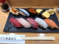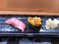 写真:旅田サトシ 大トロ・ウニ軍艦(各2巻税込600円) |  写真:旅田サトシ 佃 龍三郎 両国江戸NOREN店 |  写真:旅田サトシ ランチ1.5人前握り(13貫・税込1,900円) |