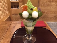 写真:旅田サトシ 両国橋茶房 |  写真:旅田サトシ 両国橋抹茶パフェ(ミニサイズ・税込980円) |  写真:旅田サトシ 両国江戸NOREN内にある土俵 |
