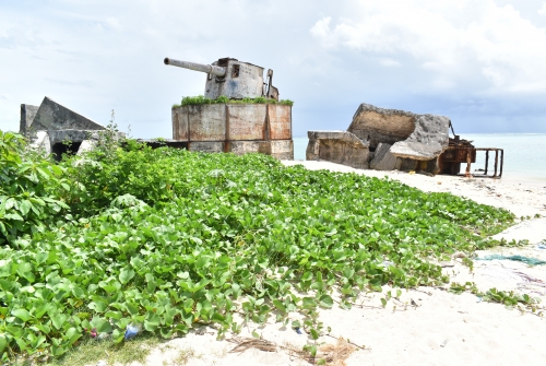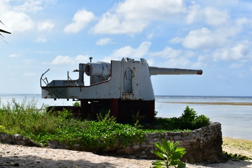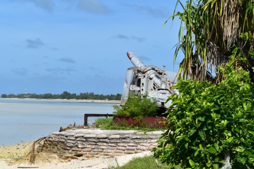 この島が80年ほど前に日本人によって侵略され、米軍との戦争により焦土化したことは、今では遠い過去のこと。海岸に放置されたこれらの高射砲やトーチカは、キリバス人にとっては単なるオブジェにしか映らないかもしれません。