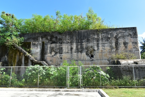こちらは、島の北東にある日本軍の司令部陣地です。現在は金網が張られ、中へ入ることはできませんが、海側へ向いている、ここと反対の面には、大砲で撃たれた大きな穴があるそうです。