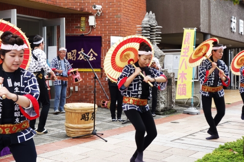 そんな祭りの一端を垣間見られるのが、桐生本町通りにあるコミュニティホール・トポス前。ここでは、「八木節交流広場」と題して、月に何度か八木節が披露されます。この日は、団体の一つ「桐生八木節昭友会」の皆さんが、熱いパフォーマンスを披露してくれました。ちょうど演技が終わるという、悪いタイミングで立ち寄った筆者に対し、なんと演技を最初から披露してくださるという温かいおもてなしに胸が熱くなりました。