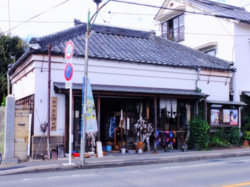 店頭に飾られた鮮やかな色合いの糸が目を引くのは、築100年の古い穀物蔵を改装して運営されている「天然染色(そめいろ)研究所」。所長さんは、40年以上染色のお仕事をされているそうです。こちらでは、桐生織物を使って草木染めや、手織(初心者)も学べます(要予約)。