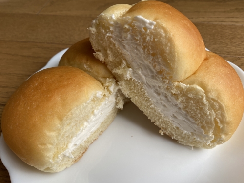 かねまるパン店の牛乳パンは、バターの練りこまれた甘い生クリームが、ふんわりしたパンと絶妙にマッチして美味しいです。クリームの量も多すぎず少なすぎず、ちょうど良い量。